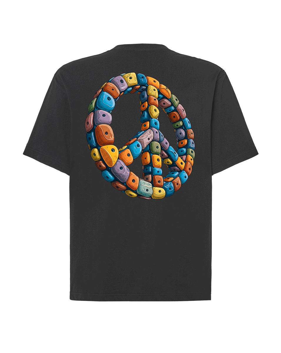 Colorful Peace & Climb inspired in Kilter holds, premium tee 100% cotton made with 30% recycled material, oversize fit 190g, highly breathable and confortable for climbing and everyday use!